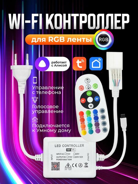 Умный контроллер для светодиодной ленты RGB, благодаря своему функционалу и поддержке Wi-Fi, обеспечит удобное управление и множество эффектов подсветки. Он позволит вам контролировать и управлять работой светодиодной лентой RGB с помощью вашего смартфона или голосового помощника Алиса. Благодаря беспроводному подключению по Wi-Fi, вы можете управлять подсветкой комнаты или любого помещения в удобное для Вас время и из любой точки. Контроллер используется для работы со светодиодной лентой типа RGB, сечением 10х20 мм, 4 pin. Для подключения RGB LED ленты всего имеется четыре контакта, три из которых - для красных, зеленых и синих светодиодов, и один - для плюсового провода (питания). Питание 110-220V. Контроллер поддерживает Wi-fi соединение. Внимание! Какое напряжение с блока питание вы подаете на контроллер (220V) - такое ЖЕ напряжение должна брать лента! НЕ подходит для 12\24V лент. В приложении доступно множество функций, которые позволяют выполнить персонализированную настройку LED подсветки и задать разные сценарии. Благодаря умному контроллеру лента запоминает процент яркости и цвет, который вы ей задали, неважно выключите вы её из розетки или голосом Алисой. К нему можно подключать ленту длиной до 50 метров при напряжении 220V и до 30 метров при напряжении 110V.