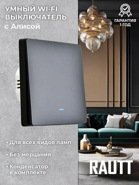 Одноклавишный умный выключатель, продуманной формы, накладной с приятным тактильным нажатием клавиш, с минималистичным дизайном. Умный сенсорный Wi-Fi выключатель позволяет управлять световыми приборами с помощью мобильного приложения или голосовым помощником Яндекс Алиса, Маруся. Они станут отличным дополнением любого интерьера, а благодаря управлению, с помощью Алисы, станут безопасным и комфортным решением для вашего дома. Прекрасно работает с Алисой через связку Яндекс и любым из приложений Tuya Smart / Smart Life. Чаще всего люди забывают выключили ли они свет в ванной или на кухне. С нашими выключателями легко решить эту проблему, отключайте свет из любой точки мира, где есть интернет. В приложении Tuya вы можете легко посмотреть, где забыли выключить свет и, по необходимости, выключить удаленно. легкий монтаж Размер выключателей стандартный. Устанавливаются вместо старых выключателей в круглые подрозетники. Работает без нуля. Выключатель работает с конденсатором. Без конденсатора при нагрузке более 40 ватт , общая мощность - 600вт. Свет можно включать нажатием на клавишу с подсветкой, либо голосом. Умный выключатель wifi Алиса управляет каждой группой света отдельно, можно называть их как угодно и добавлять в сценарии. Также можно делать из них переключатели через сценарии в приложении Tuya.