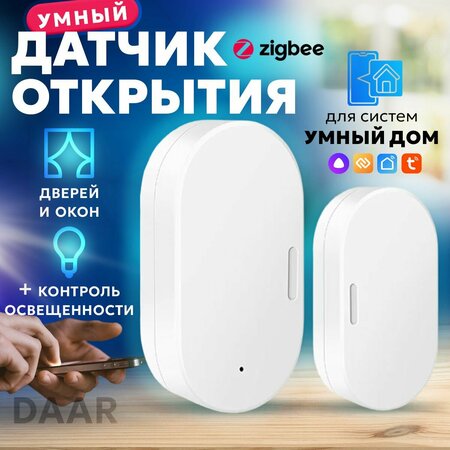 Компактный беспроводный датчик реагирует на открытие дверей и окон. И определяет уровень освещенности. Свяжите датчик с разными устройствами и создавайте сценарии в приложении Дом с Алисой. Когда датчик сработает, будут запускаться разные сценарии умного дома для вашего комфорта и спокойствия. Попробуйте задать сценарий, по которому датчик напомнит проветрить комнату, если окна закрыты больше 12 часов. И свяжите его с умным кондиционером, чтобы кондиционер не работал впустую, пока вы проветриваете. А ещё можно привязать датчик к умной лампочке — и свет в прихожей будет включаться автоматически, когда вы приходите домой. Вы всегда можете удалённо проверить статус датчика в приложении Дом с Алисой. Например, посмотреть, не забыли ли закрыть дома окно, или убедиться, что ребёнок вернулся из школы. Также в приложении можно настроить пуш-уведомления, чтобы быть в курсе, как дела дома. Для подключения датчика к Умному дому и для корректной работы необходим совместимый шлюз Zigbee продается отдельно . Датчик легко установить. Он состоит из двух частей: одна крепится на дверной косяк или оконную раму, другая — на дверь или створку окна.