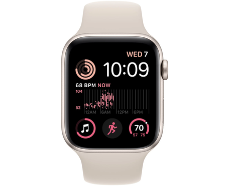 Apple Watch SE — часы, с которыми вы оцените каждую секунду. Мощные функции, с которыми ещё проще вести активный образ жизни, следить за здоровьем, оставаться на связи и чувствовать себя в безопасности. Передовые датчики, которые отслеживают все виды физической активности и показатели ваших любимых тренировок. Apple Watch SE выдерживают погружение на глубину до 50 метров. Смело ныряйте в воду — Apple Watch помогут подсчитать, какую дистанцию и за какое время вы проплыли, и даже смогут начертить маршрут, если вы плаваете в открытом водоёме. «Подвижность», «Упражнения», «С разминкой» — три кольца Активности показывают, насколько физически активны вы были в течение дня. А в приложении «Тренировка» можно отслеживать показатели различных тренировок, например пилатеса, езды на велосипеде или танцев. Когда угодно проверяйте частоту сердечных сокращений с помощью приложения «Пульс». Получайте уведомления о нерегулярном ритме сердца и о слишком высоком или низком пульсе.