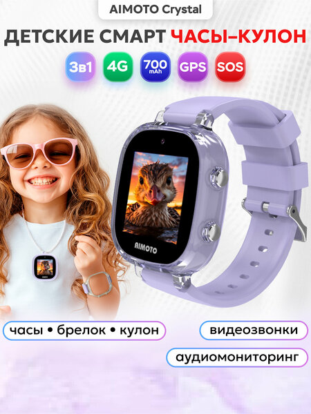 Детские 4G смарт часы в виде кулона - Aimoto Crystal (в уникальном дизайне), корпус Soft Touch. Часы-кулон смотрятся ярко и стильно - теперь ваш ребёнок будет самым модным в школе. Умные 4G часы с GPS, видеозвонком и функцией аудиомониторинг. Важное отличие от аналогов - в компактном корпусе мощная батарея 700 mAh. Часы + Браслет + Кулон = 3 В 1 Вы можете отстегнуть часы от браслета, поместить их в силиконовый чехол-подвеску, который идёт в комплекте, и носить часы на шее как модный аксессуар в виде кулона или карманный трекер.
