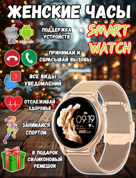Умные женские смарт-часы MEVADEN Smart Watch – это стильный и функциональный аксессуар, который станет незаменимым помощником для современной женщины. Часы оснащены настраиваемым циферблатом, что позволяет выбрать уникальный дизайн, подходящий именно вам. Смарт-часы MEVADEN Smart Watch предлагают широкий спектр функций, включая мониторинг сердечного ритма, артериального давления, уровня кислорода в крови, физической активности, сна и даже уровня дыхания. Умные часы совместимы с устройствами на базе Android и iOS, что обеспечивает их легкую интеграцию в повседневную жизнь. Емкость аккумулятора составляет 260 мАч, что обеспечивает длительное время работы устройства без необходимости частой зарядки. Смарт-часы оснащены Bluetooth-вызовом, что позволяет оставаться на связи в режиме громкой связи. Умные женские смарт-часы MEVADEN Smart Watch – это не просто стильный аксессуар, но и надежный помощник в поддержании здоровья и активности. Комплектация: 1 * умные часы, 2 * ремешка, 1 * кабель для зарядки, 1 * Инструкция по эксплуатации (английский язык), 1 * упаковка. Для синхронизации умных часов с телефоном, установите приложение FitCloudPro.