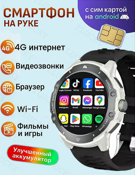 Откройте для себя мир высоких технологий с нашими эксклюзивными смарт-часами! Этот универсальный гаджет идеально подходит для мужчин, женщин и детей благодаря своему стильному дизайну и многофункциональности. Наши смарт-часы, как женские, так и мужские, оборудованы сенсорным экраном, который обеспечивает легкость управления и доступ ко всем необходимым функциям. Просмотр видео, звонки и многое другое теперь доступно прямо с часов! характеристики: · Процессор SPREADTRUM SC9832E · Архитектура ядра 4X ARM CORTEX-A53 1400 МГц · Память 2/32 Гб · AMOLED экран · камера · Галерея (работает приближение фото в одном положении) · Сим карта (поддержка 4G) Wi-Fi, GPS, NFС · Собственный маркет циферблатов · Регулировка громкости при просмотре YouTube и т. д. · Функция накрыть экран ладонью · Активация дисплея при поднятии запястья · Аккумулятор 850 mAh · Браузер · Google Play Market · Диктофон · Измерение частоты сердечных сокращений
