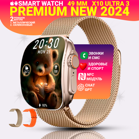 Умные смарт-часы X10 Ultra3 представляют собой многофункциональное устройство, которое станет незаменимым помощником в повседневной жизни. Изогнутый экран с диагональю 49 мм и разрешением HD обеспечивает яркое и насыщенное изображение. Сенсорный экран позволяет легко и удобно управлять функциями часов. Часы оснащены NFC и беспроводной зарядкой, что делает их использование еще более удобным и практичным. Умные часы X 10 Ultra 3 имеют ударопрочный корпус, выполненный из металла, пластика и стекла. Это гарантирует долговечность и надежность устройства. Смарт часы оснащены множеством функций, включая мониторинг состояния здоровья, управление музыкой, получение уведомлений о звонках и смс, а также измерение количества шагов. Ремешок часов выполнен из качественного гипоаллергенного силикона, который обеспечивает комфортное ношение на руке. Умные смарт-часы X10 Ultra 3 станут отличным подарком для каждого мужчины или женщины, благодаря своему стильному дизайну и функциональности.