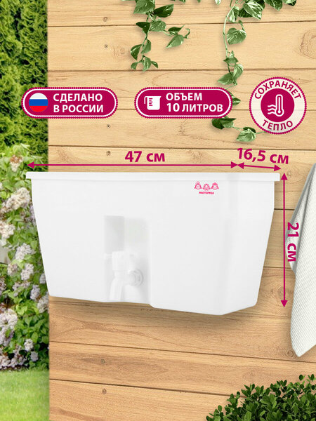 Перед началом дачного сезона многие владельцы загородных участков задумываются о покупке рукомойника, который не нуждался бы в подключении к водопроводу. Особенно актуальны такие устройства в случаях, когда на даче нет удобств. Достойную конкуренцию популярному умывальнику «Мойдодыр» способна составить удобная и функциональная отечественная модель «Мастерица W-10M». Она представляет собой простейшую мойку - невероятно практичный бытовой прибор, существенно повышающий комфорт современных дачников. Дачный умывальник без ЭВН – идеальное решение для дома и для улицы Несмотря на простую конструкцию, умывальники и рукомойники такого типа пользуются заслуженно высоким спросом, ведь они представляют собой абсолютно автономные приборы, способные полноценно функционировать без системы водопровода. Модель выполнена в виде вместительного бака, который легко вешается на стену или любую другую вертикальную поверхность. Внутрь наливается вода, которая затем с помощью встроенного краника подается пользователю, позволяя ему выполнять элементарные гигиенические процедуры с максимальным удобством. Установить умывальник можно, где угодно – на кухне, в бане, даже на улице! Пластиковый бак хорошо сохраняет тепло, поэтому вода в нем быстро нагревается на солнце, отчего эксплуатация устройства становится особенно комфортной. Электрический водонагреватель в конструкции дачного рукомойника отсутствует, поэтому подключение к электросети не потребуется. Это значит, что модель станет идеальным решением для не электрифицированных загородных домовладений. Особенности и преимущества умывальника для дачи «Мастерица W-10M»: • Изготовлен из прочного, экологически чистого термопластика, который хорошо сохраняет тепло и не выделяет опасных веществ, способных нанести вред здоровью людей или окружающей среде. • Присутствует кран для дозированной подачи воды. • Белый цвет и стильный дизайн умывальника сделают его оригинальной деталью интерьера дачной кухни. • Есть специальные пазы для удобства монтажа. • Емкость резервуара – 10 литров. • Чтобы заполнить бак водой, достаточно просто сдвинуть крышку. • Габариты – 47Х16Х21 см. • Можно дополнить мойкой-раковиной и получить, таким образом, полноценный сантехприбор, пригодный и для умывания, и для мытья посуды. Автономные умывальники без электроводонагревателя подойдут не только для дач – они актуальны и на загородных участках, где ведется строительство. Благодаря установке вместительного бака для воды, оснащенного краником, мыть руки и умываться под открытым небом станет намного удобнее.