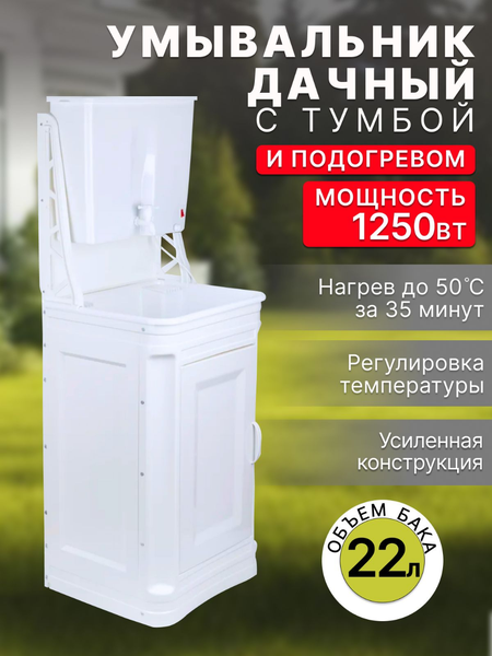 Пластиковый умывальник дачный с краном ЭлБЭТ с подогревом воды и тумбой 22 л , усиленная конструкция