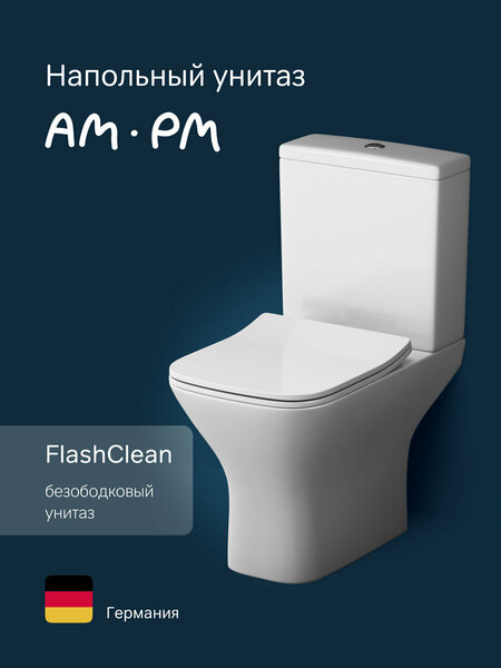 Безободковый унитаз-компакт AM.PM Gem — стиль, комфорт и гигиена без лишних усилий Унитаз-компакт AM. PM Gem в актуальной квадратной форме — это сочетание современного дизайна, инновационных технологий и максимального удобства. Он идеально подойдёт для любого интерьера ванной комнаты, подчёркивая её стиль и чистоту. ✨ Преимущества:
