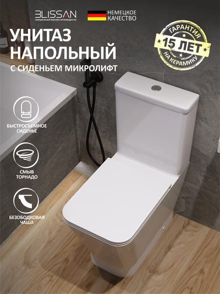 Современный дизайн: унитаз напольный компакт BLISSAN Smart станет стильным акцентом в интерьере вашей ванной комнаты.