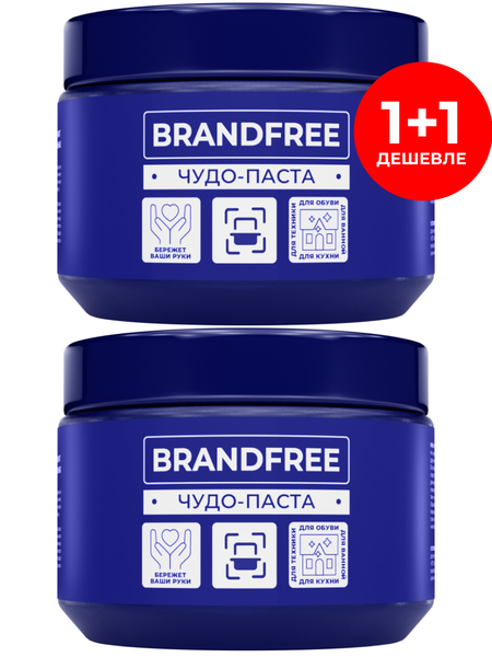 Универсальное моющее средство Brandfree чудо-паста для чистки любых металлических, эмалированных и стеклокерамических поверхностей, удаления налета и плесени в раковине, унитазе, ванне (кроме акриловой), очистки до блеска кафеля, мытья сковороды или посуды и генеральной уборки всего дома. Чудо-паста «Я твоё средство для всего» — просто супер уничтожитель жира и нагара в духовке, микроволновке и на плите, накипи в чайнике, грибка и известкового камня на стенах ванной и в туалете, налета и ржавчины на кухне и даже грязи на белой подошве обуви! Паста имеет натуральный состав, мягкий деликатный аромат без резкого запаха химии. Хозяйственный крем антижир способствует быстрому очищению кастрюль, кофемашины, сковородок, керамической плитки и швов, кухонных шкафов, изделий из серебра и металла, сантехники, отбеливанию кроссовок. Для борьбы против сильного застаревшего жира и накипи, рекомендуем нанести пасту Брендфри на обрабатываемую зону, оставить примерно на 1-15 минут в зависимости от загрязнения, затем потереть твердой губкой или щеткой. Незаменимый помощник для дома и квартиры со свойствами чистящего средства бережного действия станет лучшим подарком любой хозяйке и всем, кто предпочитает один универсальный качественный товар на замену всевозможным отбеливателям и жироудалителям. Область применения: