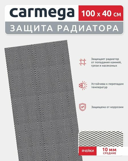 Сетка для защиты радиатора автомобиля Carmega: надежная защита и стильный вид Защита радиатора от повреждений Сетка для защиты радиатора Carmega надежно защищает радиатор автомобиля от попадания камней, насекомых, мусора и грязи во время движения. Это позволяет сохранить радиатор в хорошем состоянии и продлить его срок эксплуатации. Сетка не портит внешний вид автомобиля и не позволяет радиатору перегреваться, что делает ее отличным выбором для тех, кто ценит стиль и функциональность. Простота установки и подгонка под размер Сетка легко подгоняется под нужный размер с помощью ножниц по металлу. Это позволяет установить ее на бампер автомобиля, не теряя при этом прочность и жесткость. Для установки сетки на бампер автомобиля можно использовать хомуты, стяжки или саморезы. Важно убедиться, что решетка надежно закреплена и не двигается во время движения. Цвет и совместимость Сетка для защиты радиатора Carmega имеет стильный черный цвет, который подойдет для большинства автомобилей. Выбирая сетку для защиты радиатора Carmega, вы получаете надежную защиту радиатора вашего автомобиля, сохраняя его внешний вид и продлевая срок эксплуатации радиатора.