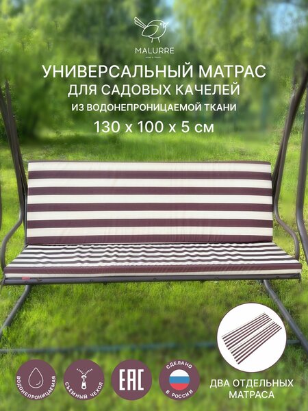 Универсальный матрас для садовых качелей, подушка на качели 130*100*5 см коричневая полоса