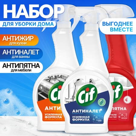 Универсальный набор чистящих и моющих средств для уборки дома CIF: спрей Антижир, спрей Антиналет, спрей Антипятна