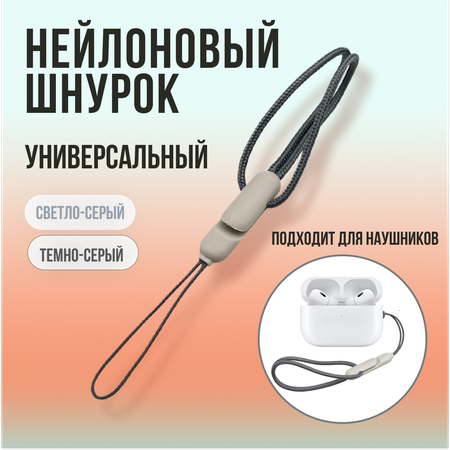 Универсальный нейлоновый шнурок с карабином на руку для телефонов и наушников темно -серый, шнурок-петля на руку