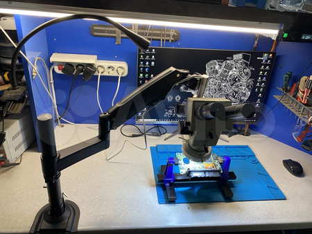 Достоинства:Удобный, крепкий кронштейн. позволяет проводить ремонты прямо над рабочим местом и убирать микроскоп в сторону, когда он не нужен. Недостатки:нет