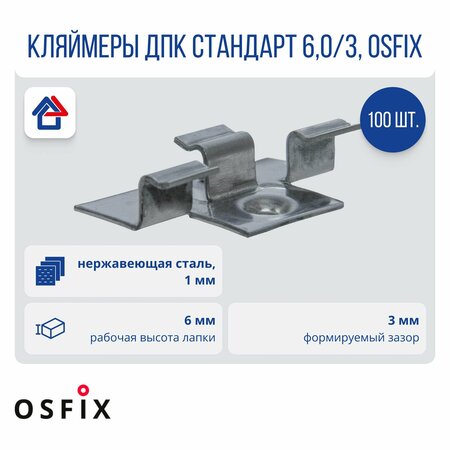 Полное наименование: Упаковка кляймеров для ДПК Стандарт 6,0/3 (AISI430, 1мм) 100шт/упак OSFIX
