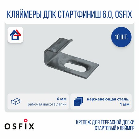 Полное наименование: Упаковка кляймеров для ДПК СтартФиниш 6,0 (AISI430, 1мм) 10шт./упак OSFIX