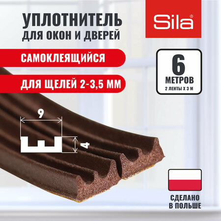 Самоклеящийся уплотнитель SILA для окон и дверей изготовлен из микропористой резины с закрытыми ячейками, на основе каучука EPDM c акриловым клеевым слоем (армированным стекловолокном). Произведен в Польше. Уплотнительная лента защищает от пыли, насекомых, запахов, шума и сквозняков. Подходит для уплотнения, герметизации и утепления: • окон, балконных и входных дверей • мебельных гарнитуров, металлических шкафов, сейфов • гаражных ворот, металлических ставней, систем вентиляции свойства: • высокая устойчивость к атмосферным воздействиям и УФ-излучению • герметичность, не впитывает влагу • устойчивость к многократным деформациям. • отличная адгезия к поверхностям из дерева, металла, пластика инструкция ПО применению: • обработанную поверхность протереть насухо и обезжирить • разрезать ленты уплотнителя между собой, отмерить необходимый отрез • постепенно отклеивая защитную ленту приклеить уплотнитель технические характеристики: Размеры: 6х4 мм Подходит для щелей 2-3.5 мм Длина: 6 метров (2 ленты по 3 метра) Срок эксплуатации 10 лет. Температура применения от +10С. Температура эксплуатации -40С +65С. Срок хранения 24мес при температуре от +5С до +25С.