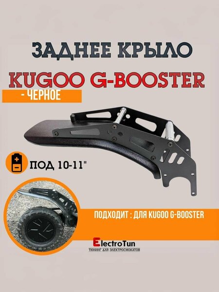Усиленное и увеличенное крыло для Kugoo G-Booster, черное - практически полностью защищают Вас от брызг и грязи из под колес(в пределах нормального использования самоката без форсирований рек, болот) - современный дизайн - легкие и прочные - подкрылки антицарапучий ABS - прочные металлические боковины - эргономичные рукоятки - порошковое покрытие - никаких сварных швов - можно использовать как упор для ноги и ручку для переноски Крылья изготавливаются уже больше 2-х лет, прошли ряд доработок и на данный момент совершенны. Установка: - Открутить старое заднее крыло, которое держится на 4-х винтах заднего квадрата - зачистить посадочное отверстие от грязи - установить новое крыло, но уже на 6 болтов. На болты предварительно нанести резьбовой герметик.