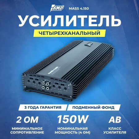 Усилитель AMP MASS 4.150 - мощный и надежный компонент для автомобильной аудиосистемы, обеспечивающий высокую выходную мощность и отличное качество звука. Усилитель относится к классу AB, что гарантирует его высокую эффективность и надежность. Номинальная мощность усилителя составляет 150 Вт на канал при 4 Ом, 240 Вт при 2 Ом и 480 Вт в мостовом режиме при 4 Ом. Максимальная мощность достигает 960 Вт, что позволяет использовать усилитель с самыми громкими и мощными динамиками. Усилитель оснащен развитым кроссовером, который позволяет работать с не процессорными магнитолами. Фильтр низких частот (LPF) работает в диапазоне от 32 Гц до 8 кГц, а фильтр высоких частот (HPF) - от 32 Гц до 8 кГц. Режим усиления баса (Bass Boost) позволяет дополнительно усилить низкие частоты, что делает звук более насыщенным и глубоким. Усилитель AMP MASS 4.150 имеет широкий диапазон частот от 10 Гц до 45 кГц, что обеспечивает качественное воспроизведение звука в широком диапазоне. Отношение сигнал/шум составляет 90 дБ, что гарантирует чистоту и качество звука даже при высокой громкости. Усилитель оснащен защитной системой и предохранителем на 35А, что обеспечивает безопасность его использования. Габаритные размеры усилителя составляют 380 х 200 х 58 мм, что позволяет легко установить его в большинстве автомобилей. В комплект поставки входит сам усилитель, комплект монтажных частей, инструкция, упаковка и гарантийный талон.
