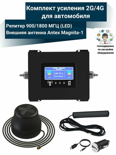 Усиление сигнала сотовой связи GSM/3G/4G Комплект с репитером 900/1800МГц для автомобиля