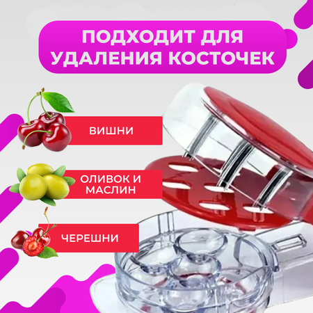 Механическое приспособление помпового типа для удаления косточек из вишни, черешни или оливок. Предназначено для быстрой обработки большого объема вишни и черешни. Мини прибор для удаления косточек вишни, черешни, ягод / Вишнедавка / Машинка удалитель. Если вы увлекаетесь консервацией, то знаете, самое вкусное варенье-вишневое. Благодаря Cherry Pitter, вы получите идеальные ягоды. А главное -процесс изъятия косточек не будет сопровождаться тратой усилий и времени, запачканной кухней и некрасивым результатом работы. Использовать приспособление очень просто. Вы отправляете ягоду в специальную емкость, легко нажимаете на рычаг - цельная ягода падает в специальный контейнер, а косточка - в другой. Справиться с большим объемом ягод очень просто. Вы навсегда забудете о неудобных средствах, типа шпильки для волос и других приспособлениях. Теперь у вас получится не несколько баночек любимое лакомство, а достаточное количество угощений для себя, близких и друзей. А если вы увлекаетесь кулинарией и часто печете торты или пироги, то ваши десерты будут выглядеть неповторимо!