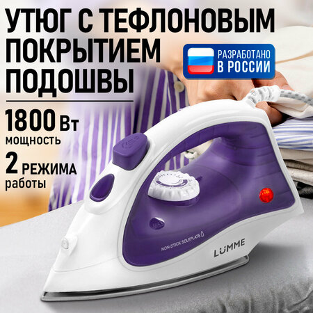 Lumme LU-1129 - утюг с системой увлажнения, функцией спрея, вертикального отпаривания и сухого глажения. Модель нагревается за 1,5 мин, поддерживает опцию парового удара и постоянной подачи пара 30 г/мин, что осуществляется благодаря резервуару для жидкости объемом 150 мл. Для увеличения срока эксплуатации электроприбора целесообразно заливать в емкость смесь водопроводной воды с дистиллированной в соотношении 1:1. Подошва выполнена из тефлона, что обеспечивает легкое скольжение и возможность безопасной работы с синтетикой и деликатными тканями при низких температурах. Тефлон обладает низкой теплопроводностью, благодаря чему не происходит быстрого перегрева ткани. Это антипригарное покрытие - с ним минимален риск прожечь вещь, оставить на ней следы, даже если под подошву попадет пуговица.