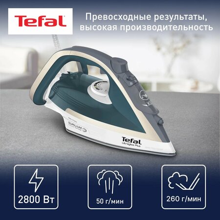 TEFAL Утюг ULTRAGLISS PLUS FV6813E0 Сочетая мощность пара и впечатляющий набор функций, утюг Tefal Ultragliss Plus предлагает простое и эффективное решение, которое обеспечит превосходные результаты глажения день за днем. Этот мощный паровой утюг создает на 25% более мощный пар* и сделает уход за одеждой еще более легким и эффективным. Подошва Durilium Airglide идеально гладкая, прочная, стойкая к царапинам. Она гарантирует максимальное распределение пара благодаря 100% активным паровым отверстиям. Подарите вашим вещам более качественный уход: мощность 2800 Вт для быстрого нагрева утюга, подача постоянного пара со скоростью 50 г/ мин для эффективности и паровой удар, достигающий 260 г/мин, для плотных тканей и стойких складок. *по сравнению с моделями утюгов FV495x того же производителя Мощная подача пара Утюг создает на 25 % более мощный пар,* гарантируя более быстрое и эффективное глажение день за днем. Мощность 2800 Вт Утюг оснащен мощностью 2800 Вт для быстрого нагрева, максимально эффективной работы и безупречных результатов день за днем. Эффективное глажение Постоянный пар до 50 г/мин делает каждое глажение более легким, быстрым и эффективным. Мощный паровой удар Мощный паровой удар до 260 г/мин быстро и легко разглаживает любые складки даже на плотных тканях. Максимальное распределение пара Активные паровые отверстия расположены по всей поверхности подошвы утюга и обеспечивают максимальное распределение пара. Подошва имеет на 30 % больше паровых отверстий, чем предыдущее поколение подошв Ultragliss. Высококачественная подошва Подошва Durilium Airglide признана подошвой №1 от Tefal, ведь она гарантирует самое быстрое скольжение утюга по ткани. Подошва обеспечивает максимальное распределение пара, защищена от царапин и прослужит достаточно долго. Экономичный режим В режиме Eco утюг потребляет на 20 % меньше электроэнергии, сохраняя оптимальную производительность и снижая неблагоприятное воздействие на окружающую среду. Идеальная точность Удобный носик подошвы облегчает разглаживание складок на воротниках и между пуговицами. Эффективность надолго Высококачественная подошва защищена от царапин и обеспечивает комфортное глажение и долгую службу. * Вышеприведенные изображения характеристик и функций носят информационный характер и могут отличаться в зависимости от конкретной модели.