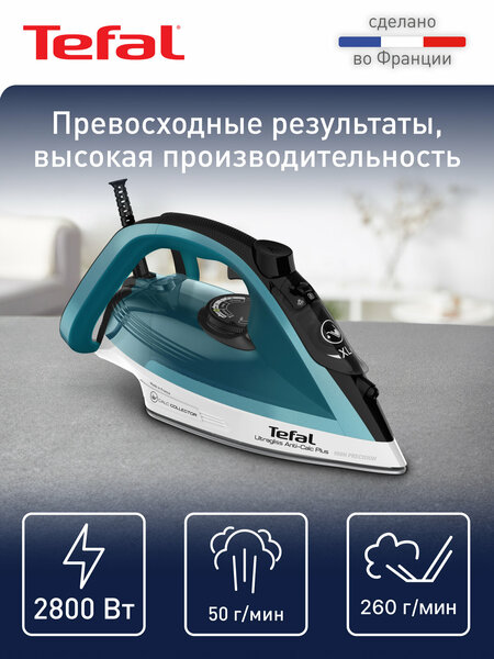 Паровой утюг Tefal Ultragliss Plus FV6844E0 создан для того, чтобы вы могли получать идеальные результаты глажения день за днем. Мощность 2800 Вт обеспечивает быстрый нагрев и максимальную производительность прибора. Постоянный пар до 50 г/мин сделает каждое использование электрического утюга быстрым и легким, а сильный паровой удар до 260 г/мин без проблем разгладит любые складки даже на плотных тканях. Удобный зауженный носик облегчит разглаживание на воротниках и между пуговицами. Подошва Durilium Airglide гарантирует безупречное скольжение устройства по любому типу ткани, а активные паровые отверстия, расположенные по всей поверхности портативного утюга Тефаль будут подавать максимальное количество пара на белье и одежду. К тому же, основание бытовой техники защищено от царапин, что позволит вам наслаждаться качественной глажкой и долгой службой прибора. С помощью функции вертикального отпаривания вы с легкостью сможете ухаживать за деликатными и большими тканями, например, костюмами или шторами. В режиме Eco ручной утюг с паром потребляет на 20 % меньше электроэнергии, сохраняя оптимальную производительность и снижая неблагоприятное воздействие на окружающую среду. Более того, прибор оснащен функцией автоотключения, если он случайно останется без присмотра - через 8 минут в вертикальном положении и через 30 секунд в горизонтальном положении Подарите своим вещам профессиональный уход с мощным утюгом Ultragliss Plus от Tefal!