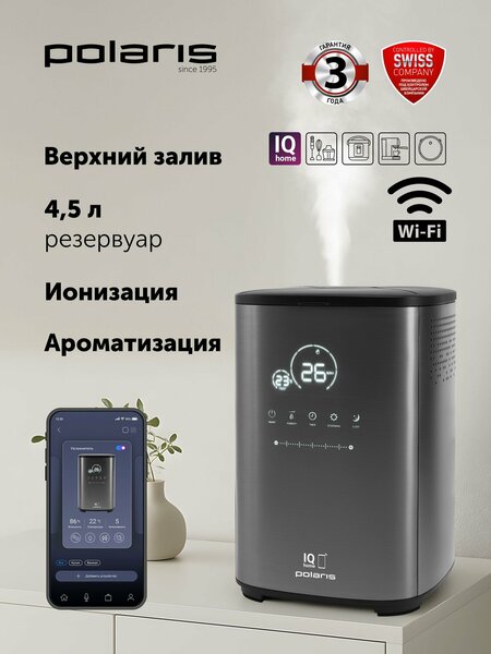 Увлажнитель воздуха для дома Polaris PUH 0205 WIFI IQ Home с ионизацией и пультом управления, графитовый