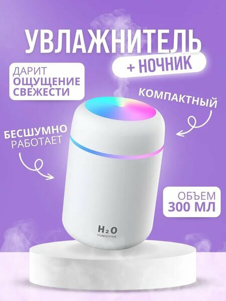▪️ Увлажняет воздух▪️ Освобождает молекулы кислорода от пыли и аллергенов▪️ Улучшает сон▪️ Помогает преодолеть пик активности вирусов и бактериальных инфекций▪️ Led подсветка из 7 цветов послужит ночником для вашей спальни▪️ Создаст особую атмосферу при добавлении пары капель аромамасла▪️ Работает до 8 часов, выключается автоматически, увлажняет площадь 12-14 м. кв. Подарок на Новый год / Подарок мужчине / Подарок девушке / подарок парню