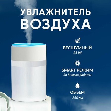 Увлажнитель воздуха ультразвуковой портативный с подсветкой для использования дома, в офисе. Аромадиффузор ультразвуковой с питанием от USB. Ночник портативный, настольный эффективно увлажняет площадь 15 квадратных метров. Подсветка плавно переливается разными цветами. Увлажнитель воздуха прекрасно подойдет для детской комнаты или на прикроватную тумбочку в спальню. Если увлажнитель воздуха для дома поставить у детской кроватки, он создаст необходимую влажность вокруг и едва уловимый белый шум, под который так прекрасно засыпают дети. Настольный маленький увлажнитель воздуха прекрасно впишется на рабочем месте у компьютера - ведь он подключается по проводу от USB гнезда. Стоит упомянуть, что увлажнитель воздуха для дома не прольется при падении - это актуально во время работы за компьютером.