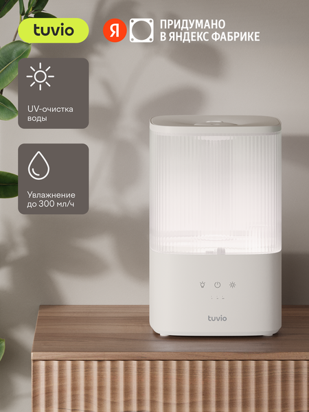 Tuvio TUH01E — это ультразвуковой увлажнитель воздуха с 4-литровым баком. Такой объём позволяет поддерживать непрерывное увлажнение воздуха в течение 15 часов. Воду можно доливать прямо в процессе работы устройства — для этого есть удобный верхний залив.