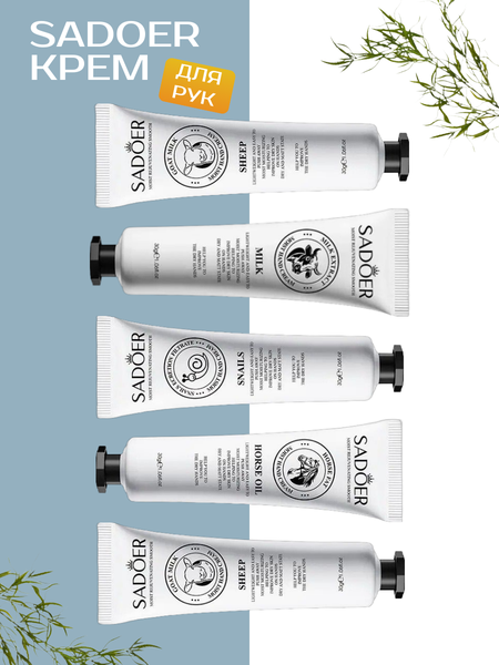 Позаботьтесь о коже рук с набором кремов Sadoer - 5 тюбиков по 30 мл, каждый из которых обогащён натуральными компонентами и подходит для ежедневного ухода. Идеальный вариант как для себя, так и в подарок! Что внутри набора: Крем с экстрактом улитки - активно питает и устраняет сухость. Крем с экстрактом молока - придаёт коже упругость и мягкость. Крем с экстрактом конского масла - оживляет кожу, делает её сияющей и гладкой. Крем с экстрактом овечьего масла - сохраняет влагу и защищает от пересушивания. Пятый крем в ассортименте - для дополнительного ухода. Преимущества: ✔ Натуральный состав: витамин E, муцин улитки, молочные протеины, без сульфатов, спирта и вредных добавок ✔ Универсальный формат — удобно брать с собой ✔ Подходит для всех типов кожи, включая чувствительную ✔ Эффективное смягчение, питание, восстановление и антивозрастной уход Идея подарка с натуральными экстрактами для мягкой и ухоженной кожи. Способ применения: Нанесите небольшое количество крема на чистую кожу рук лёгкими массирующими движениями. Излишки можно удалить салфеткой. Крем не требует смывания. Sadoer — идеальный выбор для повседневного ухода и приятного подарка! Подарите своим рукам заботу с натуральным составом и многофункциональным эффектом!