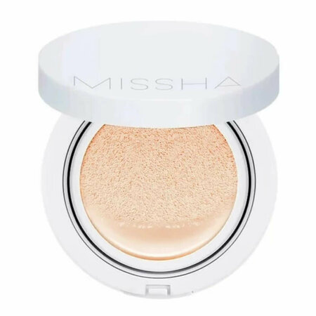 Производитель - MISSHA (Южная Корея). Увлажняющий тональный кушон Missha M Magic Cushion Moist Up SPF50+ PA+++ — средство для создания идеально ровного тона кожи и потрясающе лёгкого, естественного покрытия. Тон 21 - светлый бежевый. Содержит фоточастицы, которые помогают эффективно скорректировать тон кожи, и цветочные масла, которые способствуют поддержанию идеального баланса увлажненности и препятствуют появлению шелушения. Кушон — это лёгкий тональный флюид, облаченный в очень удобную компактную упаковку. Само средство расположено в специальной губке-подушечке и высвобождается одним нажатием спонжем, который также входит в комплект. Основные действующие компоненты: Ниацинамид (витамин B3) способствует стимуляции синтеза коллагена и улучшению защитных функций кожи, помогает снизить трансэпидермальную потерю влаги и устранить пигментацию, увлажняет, сужает поры, успокаивает, осветляет. Аденозин — мощный антивозрастной актив, стимулирует выработку коллагена, повышает упругость и плотность, подтягивает и разглаживает, замедляет старение. Масла подсолнечника, примулы и сафлора предотвращают сухость и обезвоженность, обеспечивают антиоксидантную защиту, продлевают молодость кожи и защищают от воздействия внешних раздражителей: холода, ветра, сухого воздуха. Вода лотоса и розы увлажняют, смягчают и успокаивают кожу, оказывают антиоксидантное действие, подавляя свободные радикалы. Подходит для всех типов кожи. Оригинальная косметика из Южной Кореи. Недавно открылись, поэтому отзывов пока мало) Способ применения: нанесите средство на лицо с помощью специального спонжа, равномерно распределите тональный флюид по всей поверхности кожи лица для придания однородного оттенка.