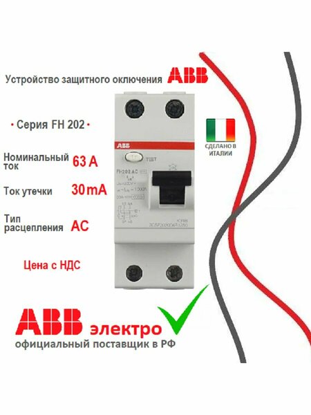 АВВ – бренд производителя электротехники, в частности автоматических выключателей, УЗО, дифавтоматов. Европейский, глобальный, премиальный, надежный, технологичный, современный. Магазин «АВВ электро» – ООО «Импорттрейд» продает официально импортированную продукцию бренда АВВ. Импортер ООО «Импорттрейд», (осно) плательщик НДС. Вы выбрали продукцию АВВ т. к. Вам важна безопасность. Но для этого Вам нужна оригинальная продукция АВВ. Оригинальную продукцию АВВ можно приобрести только у европейского АВВ и импортировать в Россию официально, только с уплатой таможенной пошлины (10%) и НДС (20%). В связи с этими расходами компании-продавцу экономически целесообразно быть плательщиком НДС, т. е. на общей системе налогообложения (осно). Продавцу на УСН - упрощенной системе налогообложения (в основном ИП) экономически невыгодно продавать продукцию покупая ее с НДС или официально импортируя, т. к. себестоимость такой продукции выше на 30-35%%. У продавцов на УСН есть высокий риск что продукция ввезена неофициально, следовательно, большая вероятность, что она не оригинальная. Т. е. если Продавец работает на УСН (в основном ИП), то большая вероятность, что она не оригинальная. Покупая неоригинальную продукцию АВВ вы не гарантируете безопасность. Устройство защитного отключения(УЗО) ABB FH202 63А 6kА 30мА 2P тип AC 2CSF202002R1630FH202 AC-63/0.03 Большое предложение для стандартных типов AC и A мгновенного действия особенно подходит для установки в бытовых условиях. ABB FH202 2P 6 kА AC 30 мА 63А поставляются от производителя, завод АВВ в Италии. Оригинальный сертифицированный товар. Автомат защитного отключения обеспечивают защиту людей и оборудования от тока замыкания на землю. Принцип работы этого автомата электрического основан на реагировании на малейшие изменения тока. Его устанавливают в: квартирах и домах; производственных цехах; офисах и серверных; коммерческих зданиях и т. д Аналог 2CSF202004R1630 Устройство предназначено для установки в бытовые и промышленные сети 220В с номинальным током 63А, подходит для подключения проводов, диаметром до 25 кв. мм, может работать в широком температурном диапазоне – от -25 до +55 градусов. Блок утечки тока этой модели отличается компактными размерами. Его устанавливают на DIN-рейку в электрический щиток, где он занимает 2 модуля. Номин. напряжение 230В Количество полюсов 2 Глубина установочная (встраив.) 69 мм УЗО FH202 AC 63А можно соединять с автоматом повторного включения для обеспечения бесперебойной подачи электроэнергии. Возможна дополнит. комплектация Номинальное импульсное выдерживаемое напряжение 4 кВ Устойчивость к импульсному току 0.63 кАЧастота 50/60 Гц Страна-производитель: италия Для еще большего разнообразия выбора данное устройство доступно в нескольких вариантах: 63А, 25А и 40А.