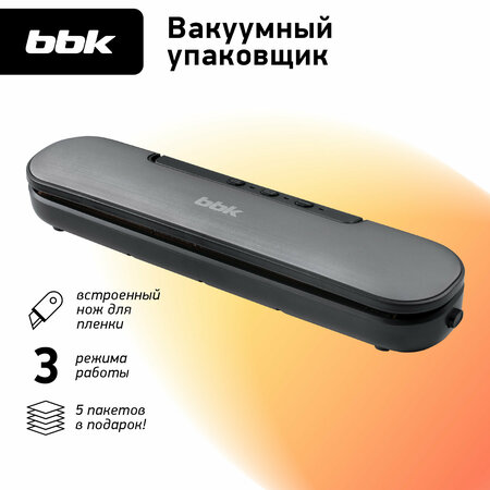 Вакуумный упаковщик BBK BVS601 темно-серый/серебро, мощность 90 Вт, степень вакуума 0,6 бар, электронное управление