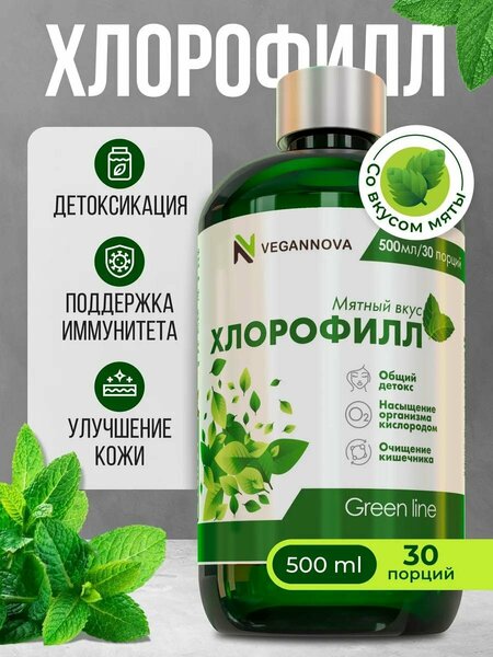 Жидкий хлорофилл с мятным вкусом от Vegannova - это идеальное украшение для вашего ежедневного рациона здоровья! Благодаря уникальной формуле этот продукт помогает очистить организм от шлаков, улучшает пищеварение и поддерживает здоровье полости рта. Сочетание мяты и хлорофилла придает напитку освежающий вкус и приятный аромат, который заставит вас возвращаться к этому продукту снова и снова. Кроме того, удобная бутылка на 500 мл содержит 30 порций, что делает его идеальным выбором для ежедневного использования. Не упустите шанс попробовать этот удивительный продукт от Vegannova и ощутить все его благотворное действие на своем организме!