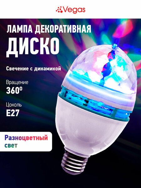 VEGAS лампа "Диско" - это яркая и стильная лампа, которая станет прекрасным дополнением для любого интерьера. Она имеет три разноцветных светодиода, которые создают эффект динамического свечения. Размер лампы - 8х15 см. Она идеально подойдет для установки на стол, полку или комод. Лампа имеет степень защиты IP20, что означает, что она защищена от пыли и брызг воды. Мощность лампы составляет 2,5 Вт, что позволяет использовать ее в помещениях с любой освещенностью. Лампа имеет многоцветный свет, который создаст атмосферу праздника и веселья. Она подходит для использования в гостиной, спальне, детской комнате или на кухне. Лампа работает при комнатной температуре и не требует специальных условий эксплуатации. VEGAS лампа "Диско" является энергосберегающей и экономичной. Она потребляет всего 2,5 Вт электроэнергии, что значительно снижает затраты на освещение. Срок службы лампы составляет 25 000 часов, что позволит использовать ее в течение многих лет без замены. Кроме того, VEGAS лампа "Диско" не является шлюзом и не поддерживает работу в системе "Умный дом". Однако она может быть подключена к любому светильнику с цоколем E27 и использоваться в качестве дополнительного источника света.