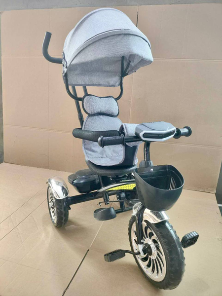 Трехколесный велосипед-коляска с поворотным сиденьем Многофункциональный трехколесный велосипед-коляска — это удобное и безопасное средство передвижения для вашего малыша. Благодаря поворотному сиденью ребенок может сидеть лицом к маме или по направлению движения, в зависимости от ситуации. Основные характеристики: ✅ 3 устойчивых и прочных колеса — отличная балансировка и безопасность ✅ Поворотное сиденье на 360° — можно использовать как лицом к маме, так и вперед ✅ Мягкое и эргономичное сиденье — комфорт во время длительных прогулок ✅ Съемный тент от солнца ✅ Прочная металлическая рама ✅ Родительская ручка управления ✅ Ремни безопасности — для надежной фиксации ребенка Рекомендуемый возраст: от 1,5 до 4 лет Максимальная нагрузка: до 25 кг Материалы: металл, пластик, текстиль Этот велосипед сочетает в себе функции коляски и транспорта, делая каждую прогулку яркой и комфортной!
