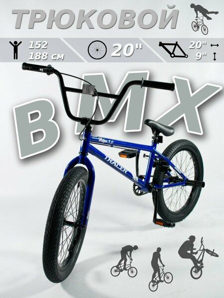 Велосипед BMX фристайл TRACER – это не просто средство передвижения, это велосипед, который поможет тебе освоить различные трюки и стать настоящим профессионалом в велофристайле. Этот вел оснащен отличной комплектацией начального уровня, которая хорошо работает на улице, в грязи, в парке, да вообще где угодно. Сочетание качественных материалов и современных технологий делает этот велосипед надежным и долговечным. Высокопрочная стальная рама (Hi-Ten) обеспечивает прочность конструкции. Усиленная стальная вилка (Ø31.8*152mm) позволит смело прыгать с высоты и выполнять различные трюки. Вынос руля имеет 4 контакта и усиленный алюминиевый корпус. Этот BMX подойдет, если твой рост от 152 до 188 см. Обрати внимание, велосипед поставляется в 85% собранном виде. Для финальной сборки тебе потребуется инструмент. Основные характеристики: Рама: 20"*9" Колеса: 20" Кол-во скоростей: 1 Амортизация: Rigid (жесткий) Задний тормоз: U-brake Передняя втулка: 14G*36H 3/8*100*150мм Задняя втулка: 14G*36H 3/8*110*170мм Пеги: резьба 3/8" (нет в комплекте, приобретаются отдельно) Размеры велосипеда: длина 143 см, ширина 71 см, высота при max положении седла 70 см, высота при min положении седла 65 см Максимальная нагрузка на велосипед: 110 кг Вес велосипеда: 12,2 кг Цвет: синий.