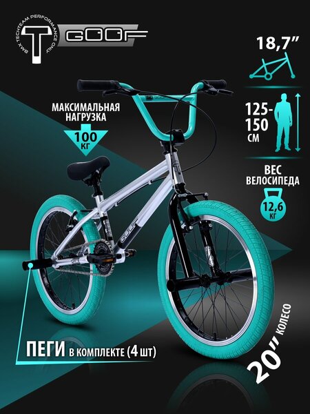 BMX GOOF в целом для тех, кто только начинает знакомиться с BMX культурой, учится делать Bunny hop, Wheelie и другие, основные трюки. Велосипед НЕ оснащён переключателями передач и амортизаторами, и НЕ является детским, рекомендуемый возраст - больше 12 лет, а рост - больше 150 сантиметров. Также важно знать, что система со звездой на 32 " зуба", с шатунами стандарта " кочерга" НЕ предназначены для высоких нагрузок, и более продвинутые райдеры выбирают трехкомпонентные системы. Но для знакомства с BMX этой системы будет достаточно. Велосипед оснащен передним и задним тормозом V-brake - они всегда будут использоваться, особенно если это Ваш первый BMX, ведь правильное, своевременное торможение - это основа безопасной езды. Эта модель максимально яркая, с разноцветными покрышками. Не забывайте о том, что этот велосипед для трюковой езды, хоть он и на 20 дюймовых колесах и напоминает подростковый велосипед, учится на нем будет сложнее чем на обычном прогулочном, детском велосипеде. Помните, что всегда нужно надевать шлем вне зависимости от того, опытный Вы райдер или только начинаете свое знакомство с велосипедом.