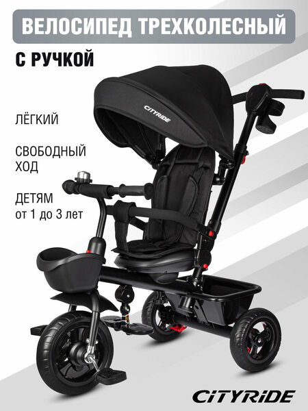 Новинка! Детский трехколесный велосипед "CITYRIDE" для детей от 12 месяцев • Надежная удлиненная стальная рама • Складная колясочная крыша • Большие пластиковые подножки-педали для самых маленьких • Вместительный багажник для игрушек и мелочей • Передняя корзина для игрушек • Подстаканник для кофе • Удобная телескопическая родительская ручка с регулировкой высоты • Наклонная спинка опускается до 120 градусов, регулируется пластиковым фиксатором на спинке, 3 уровня наклона • Разъемный бампер безопасности с мягкими подлокотниками • Трехточечный ремень безопасности • Колеса EVA диаметром 10 и 8 дюймов на пластиковых дисках • Стильный дизайн дисков • Переднее колесо функция "свободный ход" • Тормоз задних колес. Колеса на подшипниках