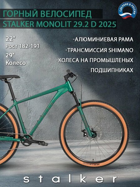 Достоинства:Красивый, стильный, современный. Недостатки:Пока не обнаружил. Комментарий:Долго выбирал велосипед, рассматривал разные варианты аспекты, стерны, даже засматривался на китайский MINGDI G-913 и чисто случайно наткнулся на Stalker monolit 29.2, прочитал описание, отзывы и посмотрев несколько видео принял решение купить, к тому же на маркете была слишком заманчивая цена на этот вел. Оформил заказ, доставка до СПб 6 дней, курьер принёс коробку с велосипедом и я приступил к сборке. Собрал минут за 30, ничего сложного имея в наличии набор шестигранников, немного смекалки и отвёртку для настройки заднего переключателя (прямо из коробки переключатель закидывал цепь только до 6 звезды, так что пришлось настраивать, благо опыт небольшой есть в этом деле).