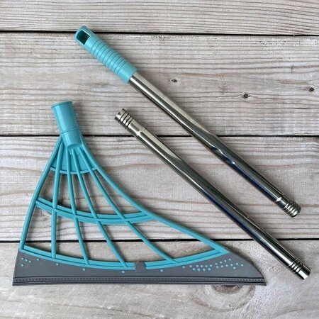 Швабра-веник со скребком из термопластичной резины послужит хорошим помощником для уборки дома. Это швабра универсальная. Часто такую швабру называют швабра силиконовая или силиконовый веник. Гибкий и прочный скребок по свойствам действительно напоминает силиконовый скребок. Швабра легко справится с мытьем окон и кафеля, уборкой душевой кабины. При этом скребок не царапает стекла и очень легко удаляет излишки влаги, захватывая большую площадь (длина силиконового скребка 30,5 см). Благодаря плотному примыканию к очищаемой поверхности веник с легкостью справится с уборкой мелкого мусора с любого покрытия (ламината, кафеля, линолеума и тд.) не повреждая его. А для уборки шерсти животных наша швабра просто незаменима. В общем это многофункциональная швабра или правильнее - веник или метла. Но, вне зависимости от названия- это волшебный инвентарь для уборки дома.