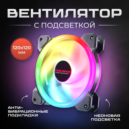 Вентилятор COOLMOON для ПК c подсветкой RGB, кулер 120x120x25 система охлаждения корпуса/процессора компьютера без контроллера бесшумный провод 50см