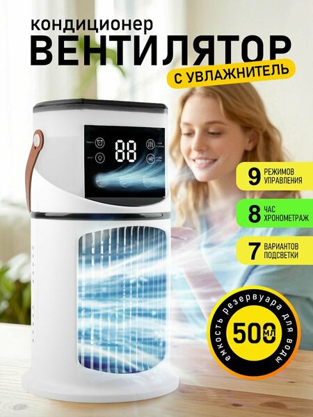 В жаркие летние дни каждому из нас хочется создать комфортную атмосферу в помещении. Настольный кондиционер-вентилятор — это идеальное решение для тех, кто ценит свежесть и прохладу. Этот портативный вентилятор станет вашим верным помощником, обеспечивая приятное охлаждение воздуха в любое время. Таймер позволяет установить время работы вентилятора на определенное количество часов. Это очень удобно, особенно перед сном: вы можете настроить вентилятор на работу на нужное время и засыпать в приятной прохладе. Настольный вентилятор также снабжен подсветкой, что добавляет уют и создает атмосферу в вечернее время. Вы можете использовать его как диффузор, добавляя эфирные масла для создания расслабляющей обстановки. Это делает его не только охладителем, но и настоящим освежителем воздуха. Выбирая наш вентилятор, вы получаете надежное устройство, которое поможет вам справиться с жарой и создать идеальные условия для работы и отдыха. В резервуар для воды вмещается до 600 мл воды. Также туда можно положить кубики льда, добавить любимое ароматическое масло и наслаждаться прохладой и ароматом.