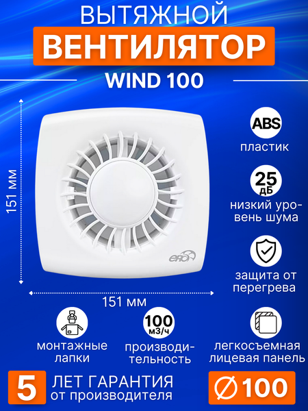 Вентиляторы вытяжной Era WIND 100, 100 мм, белый, в ванную, в туалет, на кухню