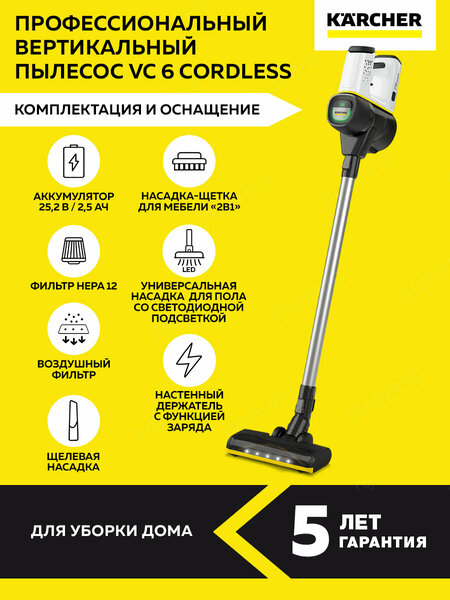 {"widgets":{"@card/UniversalPromoBadge":{"/content/page/fancyPage/universalPromoBadge":{"wrapperProps":{"margins":{"bottom":"3"}},"initialTime":1759589318599,"offerComposeId":"1867150222"}}},"meta":{"/content/page/fancyPage/universalPromoBadge":{"name":"@card/UniversalPromoBadge"}},"collections":{"productServiceSnippets":{"1867150222":{"productSnippet":{"type":"MODEL_CARD_LAYOUT","productPayload":{"title":{"value":"Пылесос вертикальный Karcher VC 6 Cordless ourFamily (1.198-670.0), для дома, беспроводной, ручной, с подсветкой"},"badges":{},"wishlistButton":{"mskuId":102713797670,"businessId":957890,"modelId":1867150222,"oskuId":103494623982},"rating":{"reviewsCount":134,"ratingCountStats":{"cnt3":8,"cnt4":15,"cnt2":1,"cnt1":5,"cnt5":336},"ratingValue":4.9,"ratingCount":365},"gallery":{"galleryType":"MIXED","mediaItems":[{"type":"IMAGE","picture":{"height":1200,"width":900,"title":"Пылесос вертикальный Karcher VC 6 Cordless ourFamily (1.198-670.0), для дома, беспроводной, ручной, с подсветкой","baseUrl":"https://avatars.mds.yandex.net/get-mpic/15453732/2a00000198eb49fd82c24f9242f5d06658f7/"}},{"type":"IMAGE","picture":{"height":1200,"width":900,"title":"Пылесос вертикальный Karcher VC 6 Cordless ourFamily (1.198-670.0), для дома, беспроводной, ручной, с подсветкой","baseUrl":"https://avatars.mds.yandex.net/get-mpic/16441222/2a000001987a3da2cbcc8f66888fb689d25d/"}},{"type":"IMAGE","picture":{"height":1200,"width":900,"title":"Пылесос вертикальный Karcher VC 6 Cordless ourFamily (1.198-670.0), для дома, беспроводной, ручной, с подсветкой","baseUrl":"https://avatars.mds.yandex.net/get-mpic/15453732/2a000001987a3da2d1a4f33ef5c36a08ff7f/"}},{"type":"IMAGE","picture":{"height":1200,"width":900,"title":"Пылесос вертикальный Karcher VC 6 Cordless ourFamily (1.198-670.0), для дома, беспроводной, ручной, с подсветкой","baseUrl":"https://avatars.mds.yandex.net/get-mpic/14816102/2a000001987a3da2d1aef27203d895840d2f/"}},{"type":"IMAGE","picture":{"height":1200,"width":900,"title":"Пылесос вертикальный Karcher VC 6 Cordless ourFamily (1.198-670.0), для дома, беспроводной, ручной, с подсветкой","baseUrl":"https://avatars.mds.yandex.net/get-mpic/15429936/2a000001987a3da2d2b049ae319b57d8be38/"}},{"type":"IMAGE","picture":{"height":2000,"width":2000,"title":"Пылесос вертикальный Karcher VC 6 Cordless ourFamily (1.198-670.0), для дома, беспроводной, ручной, с подсветкой","baseUrl":"https://avatars.mds.yandex.net/get-mpic/1614201/2a00000191baca5b65a737cf6c6ddf9286a4/"}},{"type":"IMAGE","picture":{"height":2000,"width":2000,"title":"Пылесос вертикальный Karcher VC 6 Cordless ourFamily (1.198-670.0), для дома, беспроводной, ручной, с подсветкой","baseUrl":"https://avatars.mds.yandex.net/get-mpic/12280362/2a00000191baca5b6321b00e84c80e7375bd/"}},{"type":"IMAGE","picture":{"height":2000,"width":2000,"title":"Пылесос вертикальный Karcher VC 6 Cordless ourFamily (1.198-670.0), для дома, беспроводной, ручной, с подсветкой","baseUrl":"https://avatars.mds.yandex.net/get-mpic/3918703/2a00000191baca5b644c624ec04b02541ac3/"}},{"type":"VIDEO","video":{"title":"Пылесос вертикальный Karcher VC 6 Cordless ourFamily (1.198-670.0), для дома, беспроводной, ручной, с подсветкой","streams":[{"url":"https://strm.yandex.ru/vod/vh-market-upload-converted/vod-content/vplvps5ck3ninm3hduez/58f28a88-0cd4-42d1-939e-1221f6fcfd51/kaltura/desc_f6bb5e72ec1f125f4ed82cd1203459fe/x/ysign1=5d97a187ac870e2e604afd2c10956a5ef86213376eaac32b1ef9f59179a1d308,abcID=56084,chID=vplcw5a4be2almmy7knw,pfx,sfx,ts=68e3d6c6/manifest.mpd?packager=1","type":"dash"},{"url":"https://strm.yandex.ru/vod/vh-market-upload-converted/vod-content/vplvps5ck3ninm3hduez/58f28a88-0cd4-42d1-939e-1221f6fcfd51/kaltura/desc_f6bb5e72ec1f125f4ed82cd1203459fe/x/ysign1=2bb178fed34a5c8c9a73d26644a2e14c5a9abd0321f30b04a9e461aa6fcd7f1c,abcID=56084,chID=vplcw5a4be2almmy7knw,pfx,sfx,ts=68e3d6c6/master.m3u8?packager=1","type":"hls"}],"height":1080,"url":"https://runtime.strm.yandex.ru/player/video/vplvps5ck3ninm3hduez","preview":{"height":1080,"width":1920,"title":"Пылесос вертикальный Karcher VC 6 Cordless ourFamily (1.198-670.0), для дома, беспроводной, ручной, с подсветкой","baseUrl":"https://avatars.mds.yandex.net/get-mpic/14110297/2a00000197f4ab8a9c85c9f0f4d1a02aa2b1/"},"width":1920}}]},"snippetStyle":"NORMAL"},"baobabPayload":{"marketSku":"102713797670","type":"offer","isUltima":false,"modelId":1867150222,"snippet_type":"product","wareId":"out-of-stock","oskuId":103494623982,"hid":16302537,"isExpress":false,"vendorId":206930}}}}}}