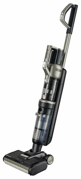 Беспроводной вертикальный моющий пылесос 5 в 1 подходит для сухой и влажной уборки. С его помощью можно пылесосить, мыть пол, собирать пролитые жидкости с пола, чистить мягкую мебель, также благодаря съемной моторной части и отдельному контейнеру для пыли его можно использовать в качестве компактного ручного пылесоса. LED дисплей поможет контролировать статус уборки и заряд батареи. Напольная подставка одновременно является и зарядной станцией, и станцией самоочистки. При нажатии специальной кнопки валик промывается чистой водой и высушивается прямо на базе. В комплект входит мини турбощетка с УФ-лампой для дополнительного обеззараживания мягкой мебели и других поверхностей. Технология Walk by itself - Благодаря особому электроприводу на щетке пылесос сам устремляется вперед, его вес практически не ощущается при использовании на горизонтальных поверхностях. Функция самоочистки валика. Функция предварительного смачивания пола перед уборкой. Система 5-ступенчатой фильтрации во время сухой уборки благодаря уникальной конструкции. Зарядное устройство: - Входное напряжение: 100-240 В; - Частота: 50/60 Гц; - Выходное напряжение: 34,2 В; - Выходной ток: 1,0 А. Характеристики: Тип уборки: Сухая и влажная Тип аккумулятора: Lithium 3900 мАч Время работы: до 60 мин Время зарядки: до 3,5 часов Уровень шума, Дб: до 72 Мощность всасывания: 135 Тип вилки: EU Мощность: 300 Вт Мощность всасывания - 135 Вт Напряжение (в): 240 Объем контейнера для пыли, л: 0.2 Объем бака для грязной воды (л): 0,3 Объем бака для чистой воды (л): 0,5 Количество режимов мощности: 2 Режимы мощности: эко, средний, сильный. Доп. аксессуары: мини турбощетка с УФ-лампой, насадка 2 в 1, щелевая насадка, ершик для очистки контейнера для грязной воды, щеточка для очистки валика Вес: 6920 г Цвет: Серый