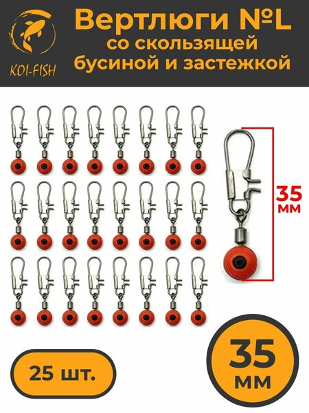 Вертлюги с карабином №L (356LA) со скользящей бусиной и застежкой 25шт. 35мм коннектор рыболовный для поводков для карповой ловли